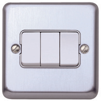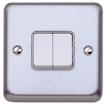 – A metal, flush mounting range of wiring devices. Frontplates with a maximum 9mm profile and subtle 7mm radius rounded corners.