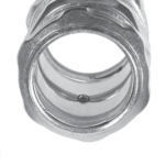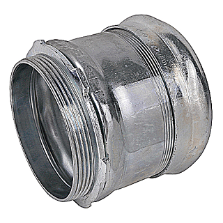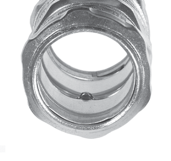 • Strong, thick protrusion that does not exceed the thickness of EMT. Keeps forcefully inserted conduit from breaking through the opposite side of the coupling, while not interfering with the pulling of conductors